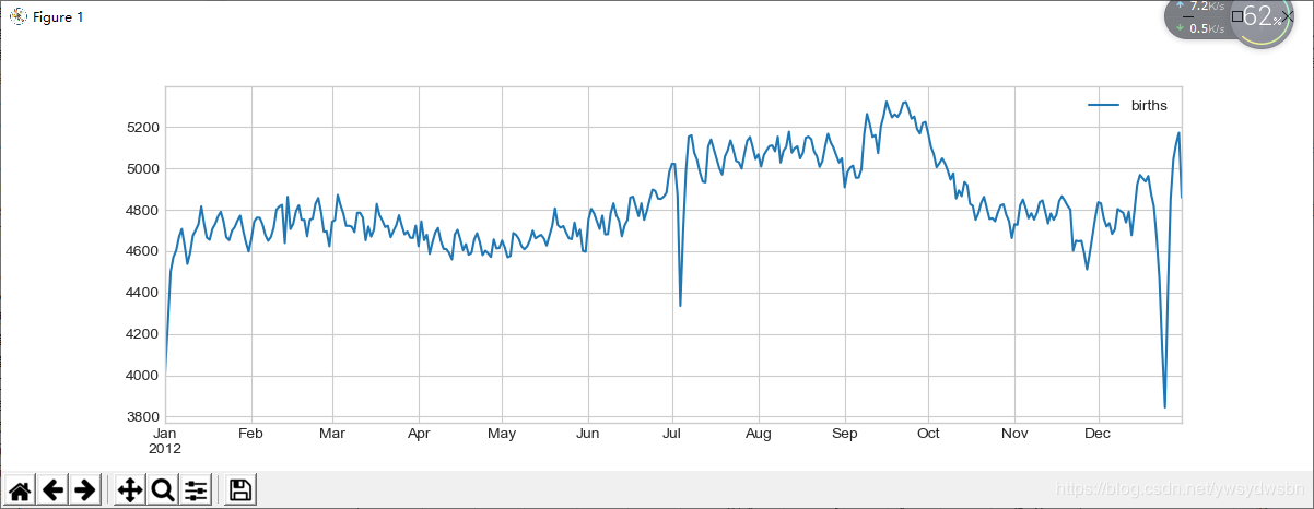 births_by_date.index = [pd.datetime(2012, month, day) for (month, day) in births_by_date.index]