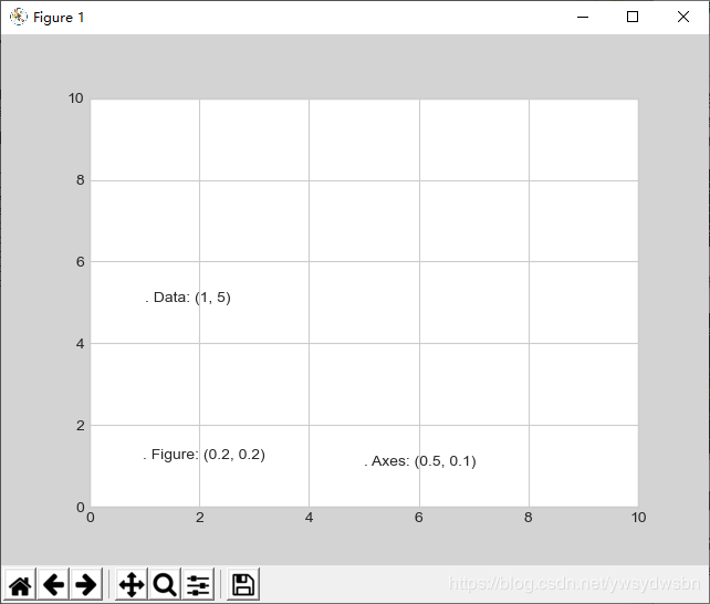 transFigure 坐标与之类似,不过是以图形(图中灰色矩形)左下角的位置为原点,按图形尺寸的比例呈现坐标。