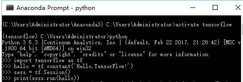 (3)在Anaconda Prompt中启动tensorflow环境: