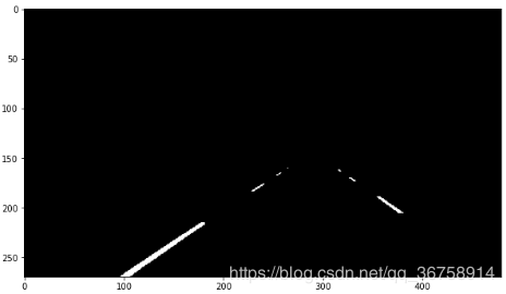 - maxLineGap:同一方向上两条线段判定为一条线段的最大允许间隔,超过了设定值,则把两条线段当成一条线段。