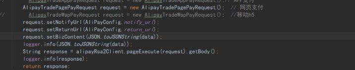 String response = alipayRsa2Client.pageExecute(request).getBody();