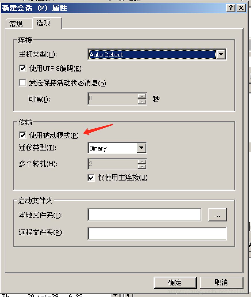 第五步:进入xftp中设置相关信息,输入创建的ftp账号密码(不是root的),使用的协议不是sftp,而是ftp,端口是21,注意在选项里面,将传输类型勾选使用被动模式。