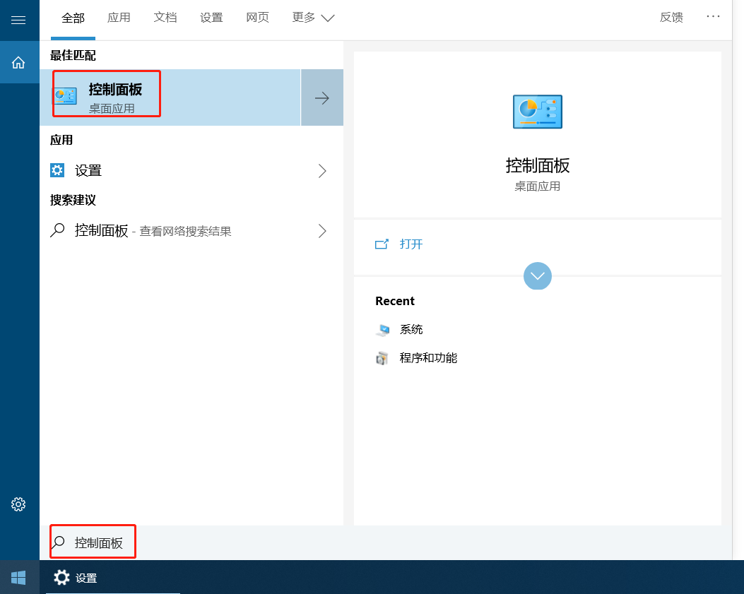 开启适用于Linux的Windows子系统按下 Windows jian键,输入控制面板 打开控制面板