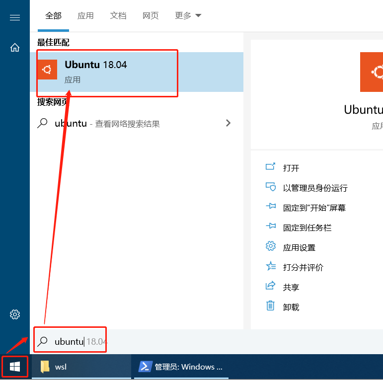 按下 Windows 键 输入 Ubuntu 单机打开,设置用户名和密码