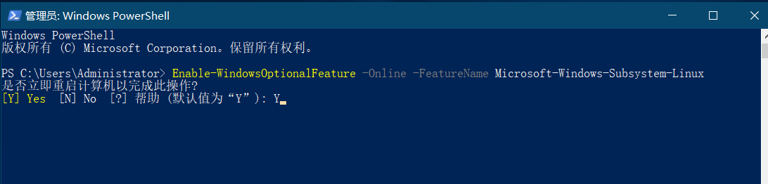 Enable-WindowsOptionalFeature -Online -FeatureName Microsoft-Windows-Subsystem-Linux