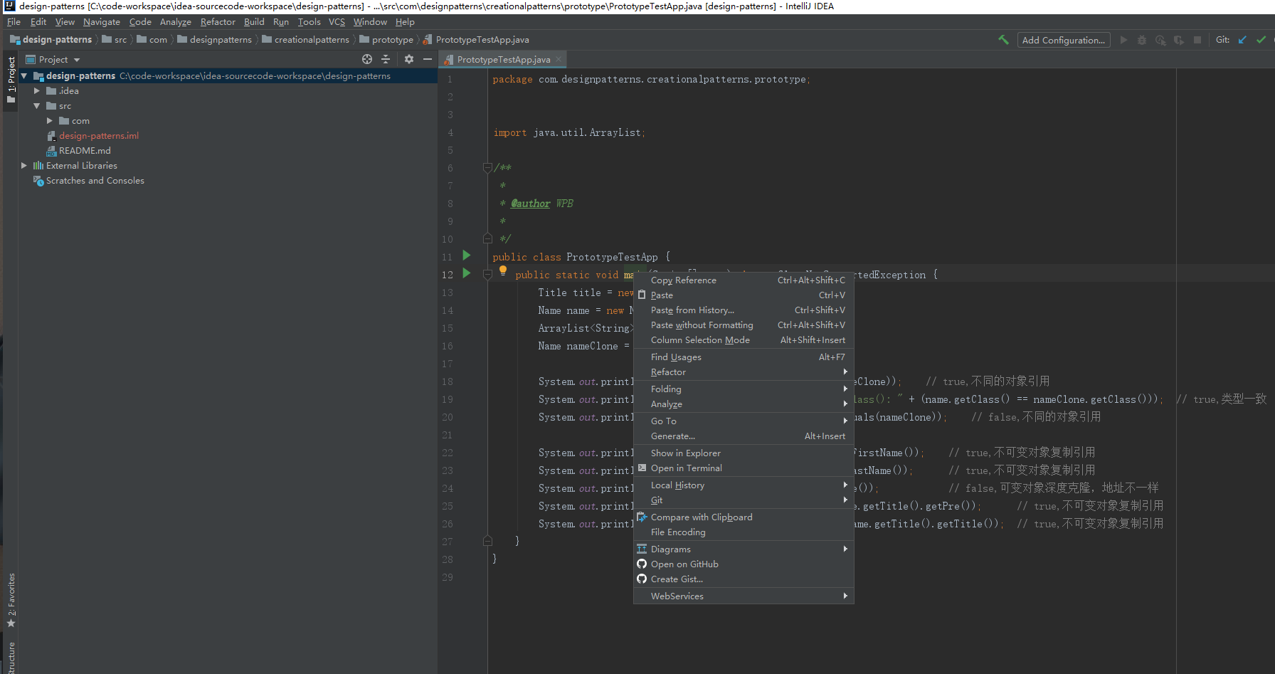 这里是配置有问题造成的,对比下正常的工程,可以发现src目录的不一样,没有设置为 Sources ,然后打开对应的java文件,可以发现引用也有问题,出现报错的情况,这里是没有引入jdk(或者jre)的原因。(其实这里因为新安装的idea没有配置导致。)