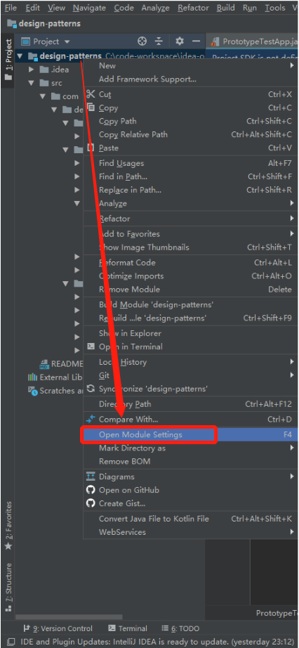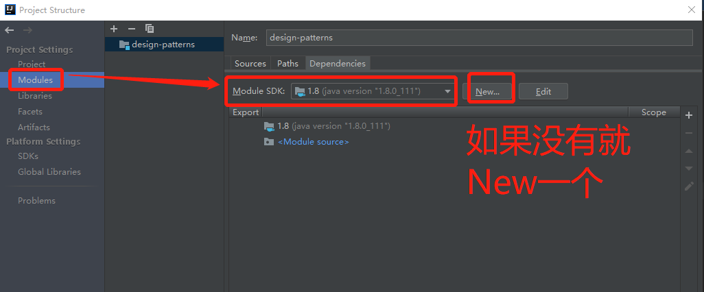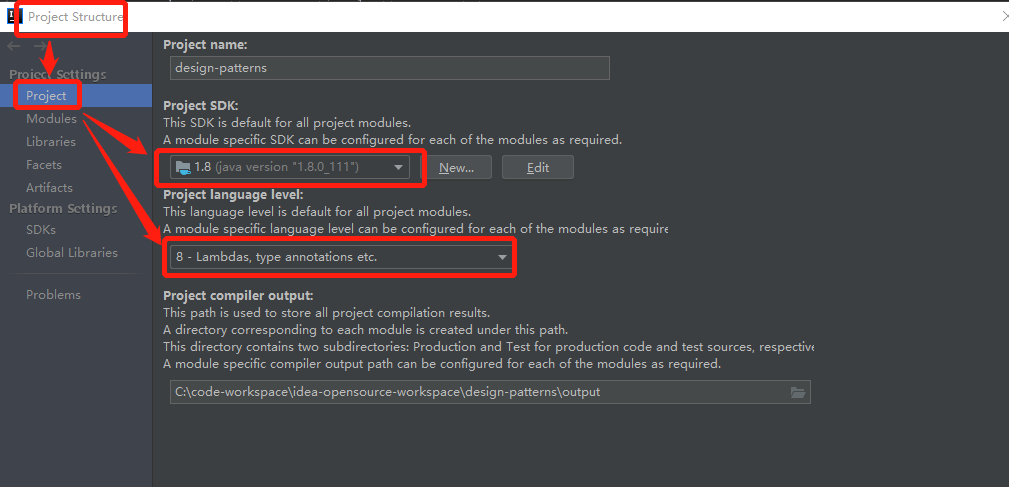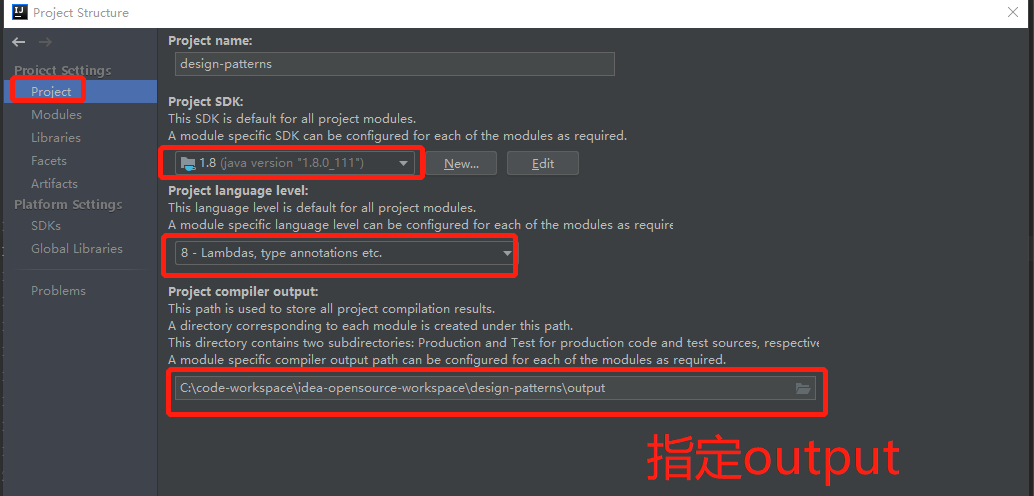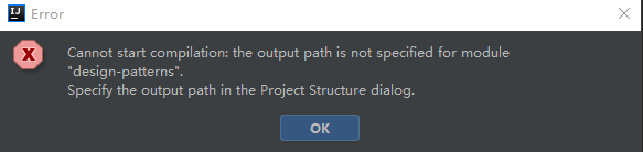 报错:Cannot start compilation: the output path is not specified for module "design-patterns".