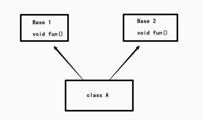 解决方法:使用作用域运算符::来解决,明确指向的方法,例如obj.Base1::fun()