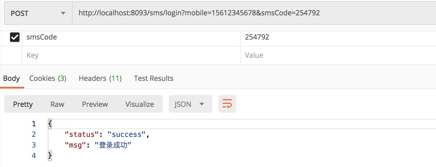当手机号码 和 短信验证码都正确的情况下 ,登陆就成功了。