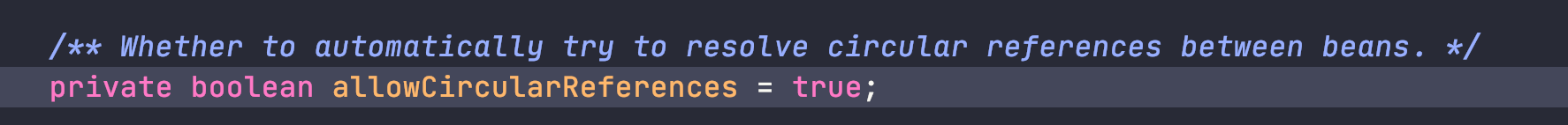 allowBeanDefinitionOverriding和allowCircularReferences。这两个属性未指定时取的是DefaultListableBeanFactory中的默认值,均为true,即默认允许同名bean和循环引用(只有单例允许)。