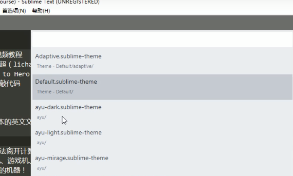 改变主题先安装主题包(eg:ayu)首选项设置主题
