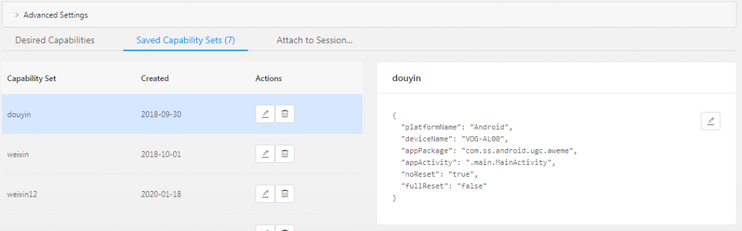 首先用appium客户端打开抖音(关于appium的安装和使用,请参考之前的文章),配置如图: