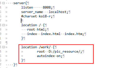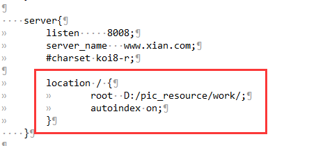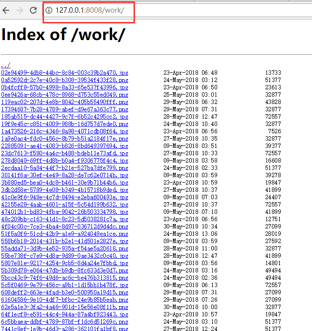 我电脑上的work文件夹下面有很多图片,我想通过nginx搭建静态资源服务器,通过在地址栏输入ip+port的方式完成目录的映射