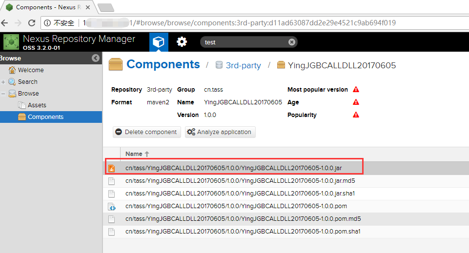 E.打开浏览器输入私服服务器地址进入3rd-party即可看到刚才上传的jar包。