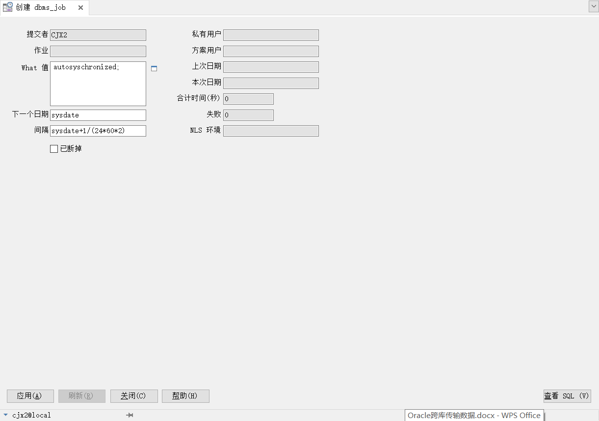 到此这篇关于通过PLSQL Developer创建Database link,DBMS_Job,Procedure,实现Oracle跨库传输数据的文章就介绍到这了,更多相关plsql developer Oracle跨库传输数据内容请搜索自学编程网以前的文章或继续浏览下面的相关文章希望大家以后多多支持自学编程网!