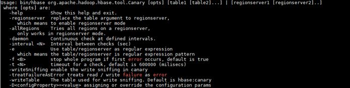 #对一个regionserver进行检查 hbase org.apache.hadoop.hbase.tool.Canary -regionserver node-ana-coreQZLQ0002.1432edca-3d6f-4e17-ad52-098f2adde2e6.com #注意:不指定regionserver时扫所有regionserver