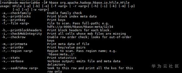 #查看t1表下的其中一个HFile的详情,打印KV hbase org.apache.hadoop.hbase.io.hfile.HFile -v -m -p -f /hbase/data/default/t1/4dfafe12b749999fdc1e3325f22794d0/cf1/06e102be436c449693734b222b9e9aab