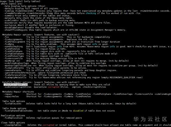 由于该工具使用的场景太多太细,此处就不作展开介绍了,可以查看参数的描述来对各种异常场景进行修复。注意:在不清楚异常原因的情况下,千万不要乱使用修复命令病急乱投医,很有可能会使问题本身更糟糕。