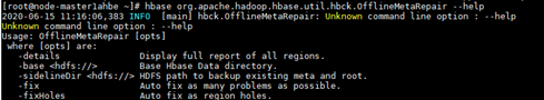#重新建立hbase的元数据 hbase org.apache.hadoop.hbase.util.hbck.OfflineMetaRepair
