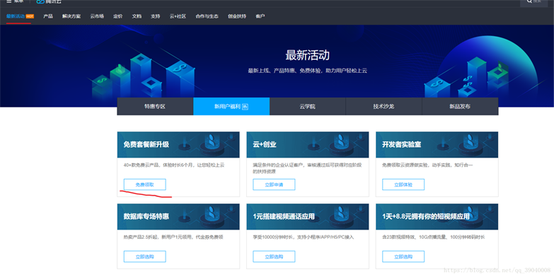 如果大家只是想着弄来玩两天的话,腾讯有一个新用户15天的服务器体验活动,只需认证后就可以领取。如下: