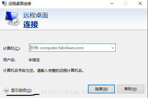 第一步、点击 开始菜单>>Run,输入 “mstsc”命令,打开远程桌面对话框
