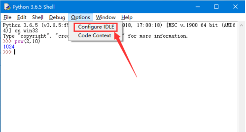 4、然后在下拉菜单中选择“Configure IDLE”。