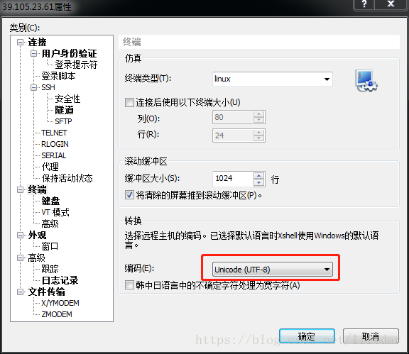从上图中,能够看到xshell的编码格式为“UTF-8”。