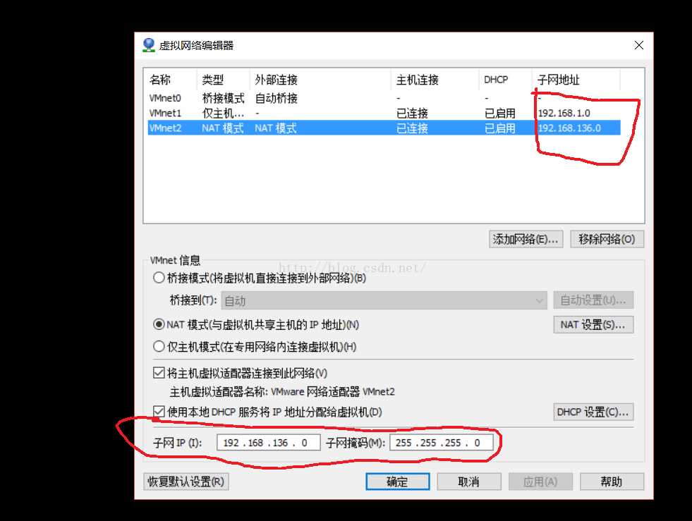 然后我们需要打开虚拟机的网络设定来查看一下设定的ip地址,在虚拟机的编辑一栏里有一个虚拟网络编辑器我们把它点开来看。