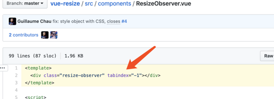 首先我们可以看到,这个组件添加resize-observer,它的tabindex 为-1,这意味着,tab键不会调到这个元素上
