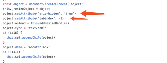 然后,是object元素的创建,aria-hidden为true和tabindex为-1,可以说对ARIA11的处理,真的很细节