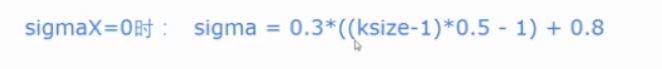 处理结果=cv2.GaussianBlur(原始图像src,核函数大小ksize,sigmaX)