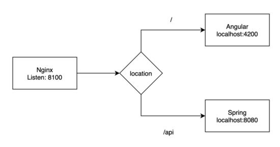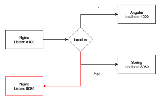 Nginx监听端口8100,前台端口4200,后台端口8080。