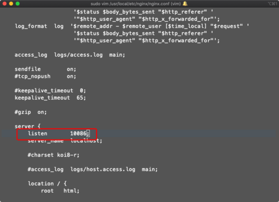 // 修改配置文件 sudo vim /usr/local/etc/nginx/nginx.conf // 测试配置文件 nginx -t // 重启Nginx nginx -s reload