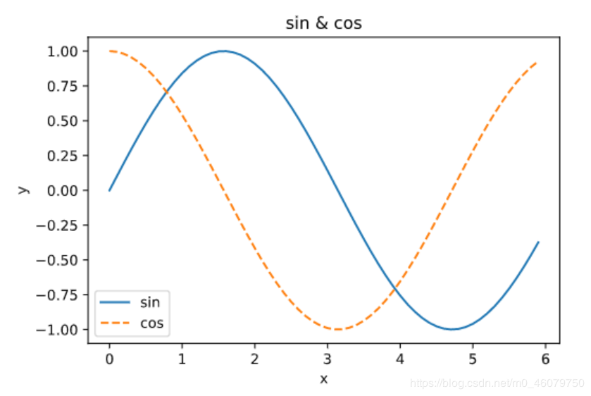 plt.title('sin & cos') # 标题