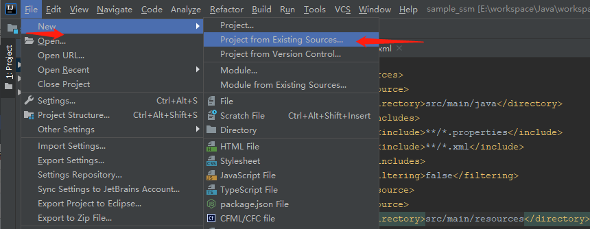 设置完毕后,随便进入一个已经存在的项目中,选择File-->New-->Project from Existing Sources