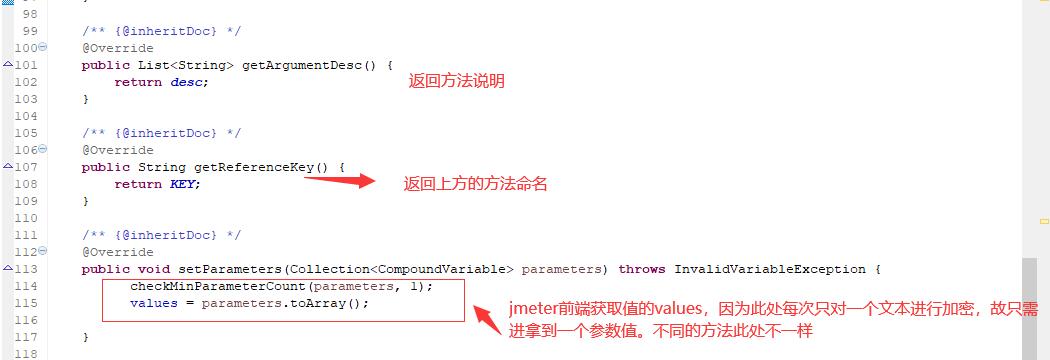 最后在你的实现类中还需要提供一个方法来告诉JMeter关于你实现的function的描述。