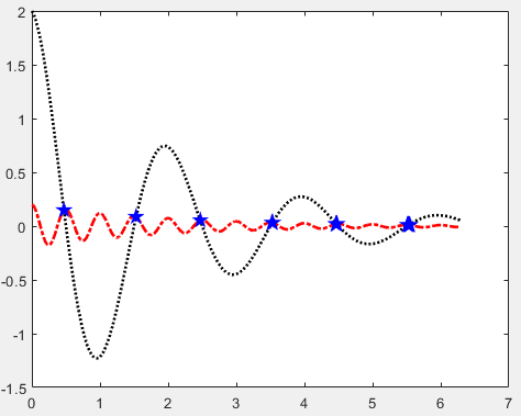 y2=2*exp(-0.5*x).*sin(2*pi*x);