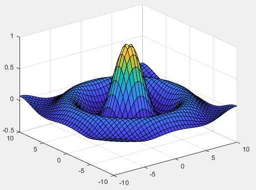 z=sin(sqrt(x.^2+y.^2))./sqrt(x.^2+y.^2);