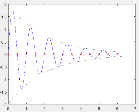 y2=2*exp(-0.5*x).*sin(2*pi*x);
