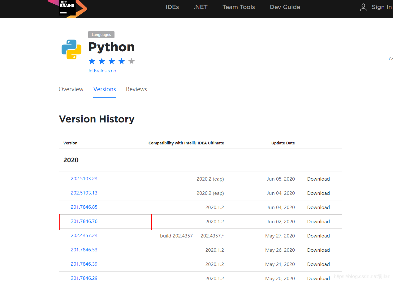 https://plugins.jetbrains.com/plugin/631-python/versions