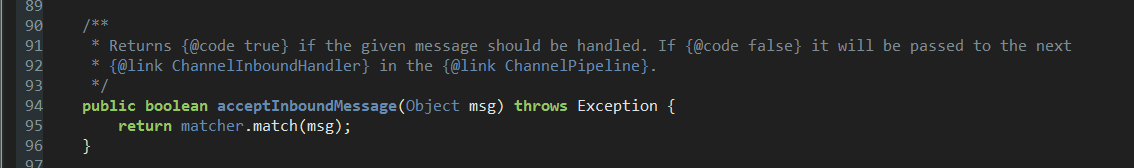 首先当接收到msg时,先使用accpetInboundMessage()方法来判断该消息是否可以处理。我们来看下该方法的实现。