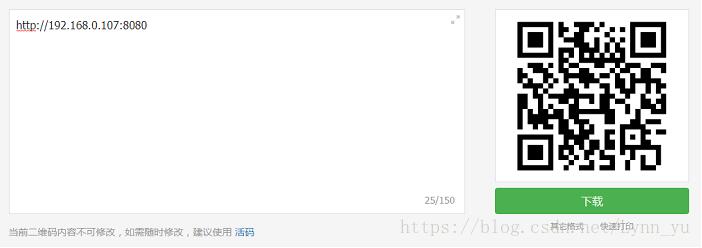 借助二维码生成工具修改后项目生成二维码。当然不嫌麻烦,地址栏手动输入也可以。https://cli.im/