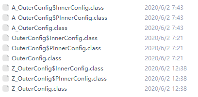 垮.java文件 (垮配置类)之间的顺序,是由自然顺序来保证的(字母表顺序)如上:下加载A打头的配置类(含静态内部类),再是O打头的,再是Z打头的