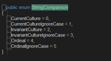 StringComparison有哪些值呢: