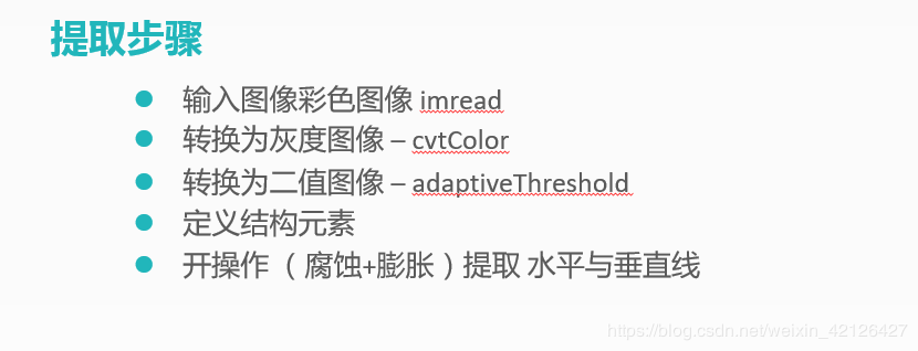 morphologyEx(binImg, dst, CV_MOP_OPEN, hline); //上面等价这个一句话