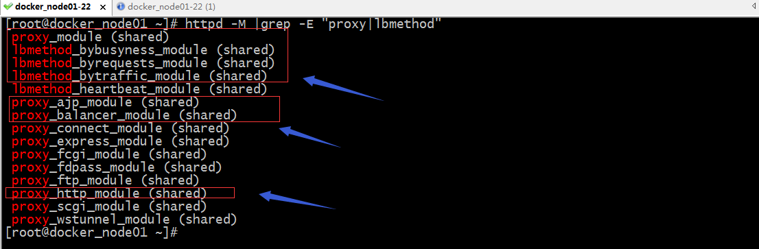 httpd做负载均衡器,需要确认httpd是否开启了proxy_http_module、proxy_module 、proxy_balancer_module如果需要用到ajp还需要确定proxy_ajp_module模块是否启用,以及调度算法的三个模块lbmethod_bybusyness_module 、lbmethod_byrequests_module、lbmethod_bytraffic_module;以上模块对于调度算法来说用到那个启用那个也行,对于http或者ajp也是一样的;用得到就启用,用不上不启用也没关系;