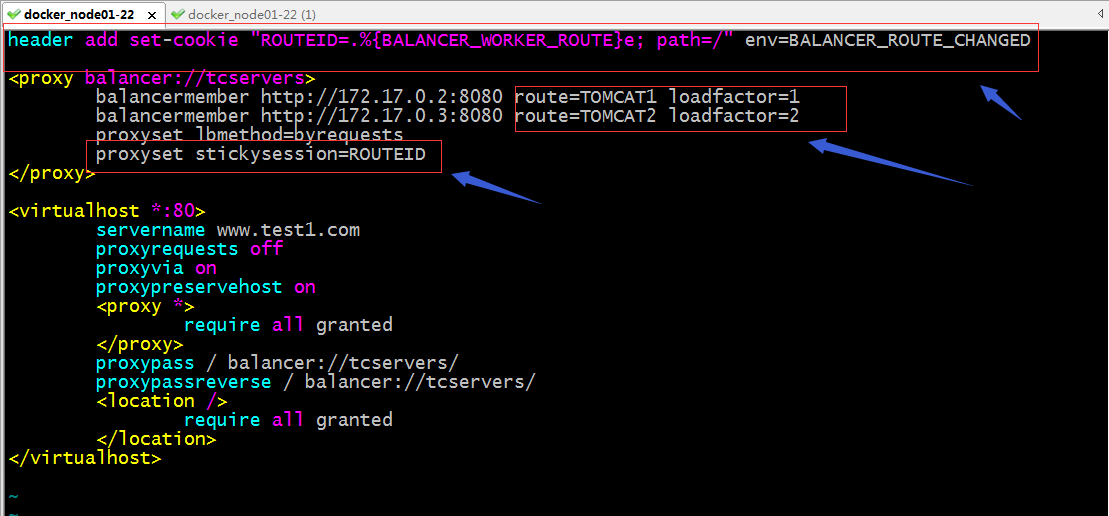 提示:可以看到当我们使用curl模仿客户端访问携带cookie时,在响应首部就不会在给我们发set-cookie首部(这里的set-cookie是指和我们在服务器设定相关的首部),并且我们携带不同ROUTEID的cookie,它会根据我们携带的ROUTEID的值把我们调度到不同的后端server上进行响应;对于httpd负载均衡代理后端tomcat用ajp的配置方式和http的配置方式一样的,不同的只是把后端server的http协议修改成ajp,后端tomcat的端口修改成ajp协议监听的端口即可,默认tomcatajp协议监听在8009端口;