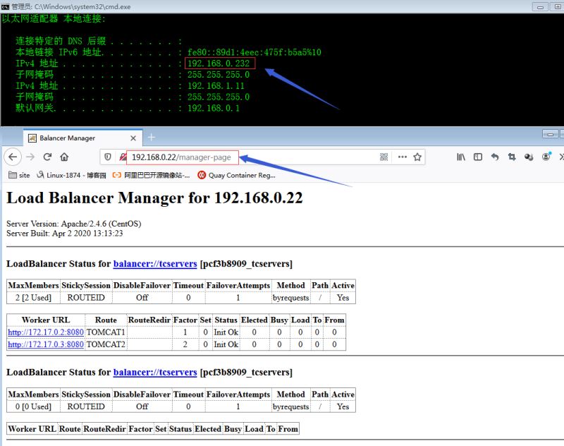 验证:访问宿主机上的80端口看看是否分别能够访问到后端两台tomcat容器提供的主页?