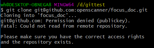 当使用git方式下载时,如果没有配置过ssh key,则会有如下错误提示: