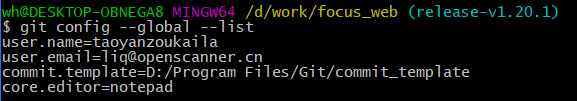 首先用如下命令(如未特别说明,所有命令均默认在Git Bash工具下执行)检查一下用户名和邮箱是否配置(github支持我们用用户名或邮箱登录):